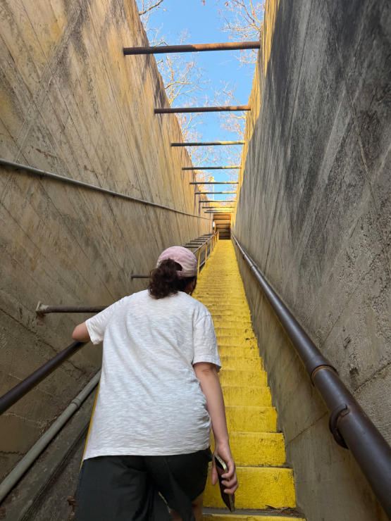 그리고 좁고 가파른 노란 계단과 철제 나선 계단까지.